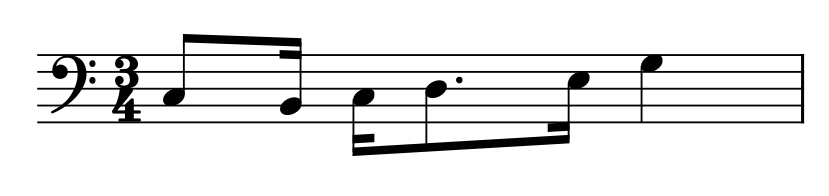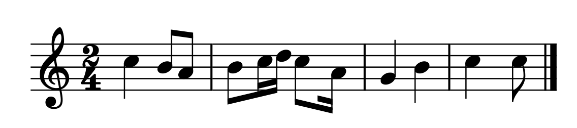 A quaver in bar 2 and a crotchet in bar 4
